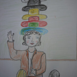 Запитала вчителька, як тільки увесь 5-А розмістився в класі. Кожного разу Тетяна Тарасівна починає урок Мистецтва з цікавого питання, яке активізує учнів мислити ширше, креативно, по-новому. — Скільки я маю капелюхів Де Боно? — знову запитала Тетяна Тарасівна. А потім сталося щось надзвичайне: вона присіла, на мить, так, щоб її не бачили учні й знову встала, а на її голові розмістилася вежа з Капелюхів-циліндрів різних кольорів. Дівчата так і присіли, от, нарешті, вони дізнаються в чому криється таємниця бездоганного стилю їх найкращої, такої класної керівниці. Отже, їх керівниця класу у...