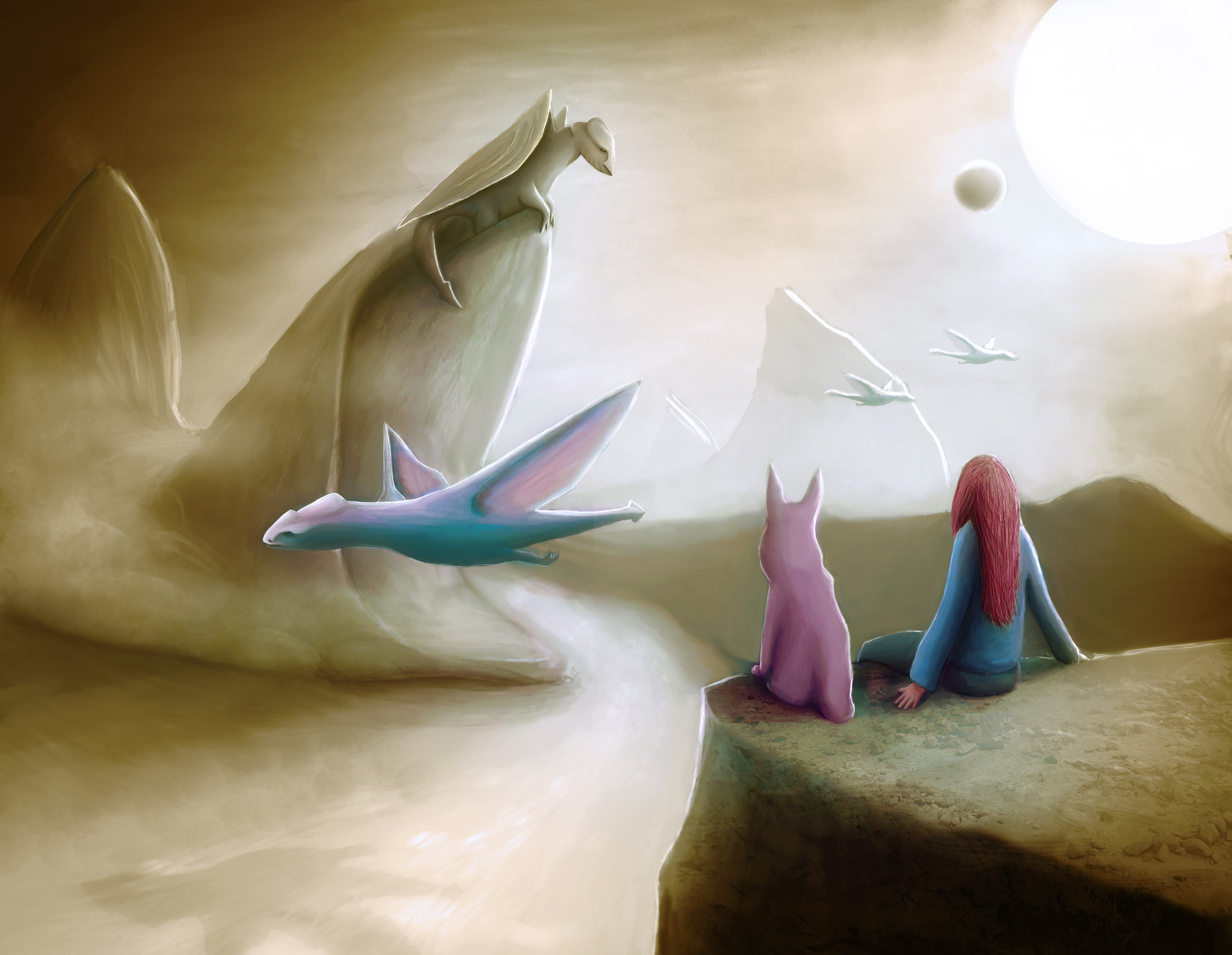 Коли дівчинка вибилась з сил і заснула, дракони дбайливо вклали її на картатий плед та прикрили пухнастою ковдрою з шерсті єдинорога. Вперше Катруся бачила веселі кольорові сни. Кошмари пішли назавжди, бо нарешті знайшлися ті, хто її вислухав.